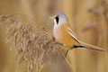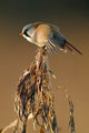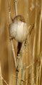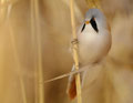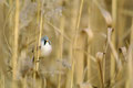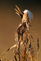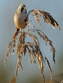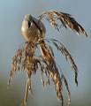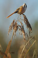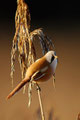 Und morgens hatte ich von einem Bekannten einen Tipp bekommen: In einem Schilfröhricht ganz in der Nähe hatte er morgens Bartmeisen gesehen, die hier fast jedes Jahr an ein paar Tagen im Herbst zu sehen sind. Ich bin dann mittags losgezogen, mit dem 600er und einem Tarnüberwurf "bewaffnet" - und einem kleinen Lautsprecher, mit dem ich am Schilfrand sitzend Bartmeisenlaute über das Röhricht geschickt habe. Nach 20 min. war ein paar vor mir, manchmal keine 2m von mir entfernt! Sie haben gefressen und sich überhaupt nicht von mir stören lassen! Ein wunderschönes Naturerlebnis - auch wenn es "nur" kleine, wenn auch wunderschöne Vögel waren!